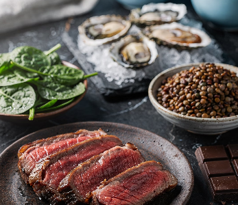 헴철은 주로 육류, 생선, 해산물에 포함된 철분 형태입니다. 체내 흡수율이 약 15~35%로 비교적 높아 효율적인 철분 공급원으로 평가됩니다.