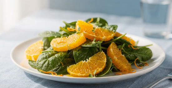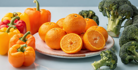 - 비타민 C가 풍부한 과일(오렌지, 키위 등)과 함께 섭취
